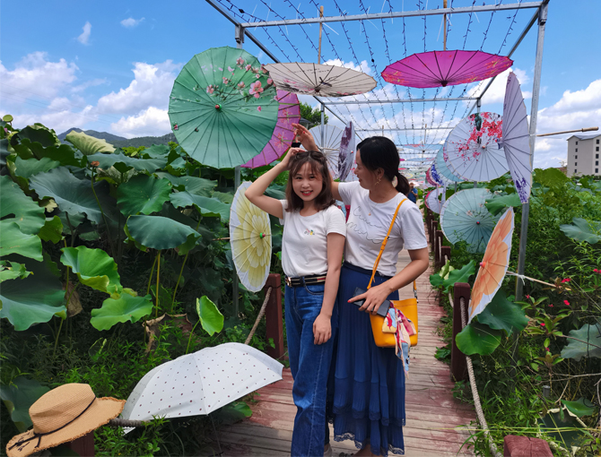 接下來是去參觀河圳口荷花場,剛好碰到園里的荷花正在悄然綻放,走進(jìn)去如漫步云端,如置身仙境。不禁讓人想起一句詩詞:蓮之出淤泥而不染,濯清漣而不妖,中通外直,不蔓不枝,香遠(yuǎn)益清,亭亭凈植,可遠(yuǎn)觀而不可褻玩焉。